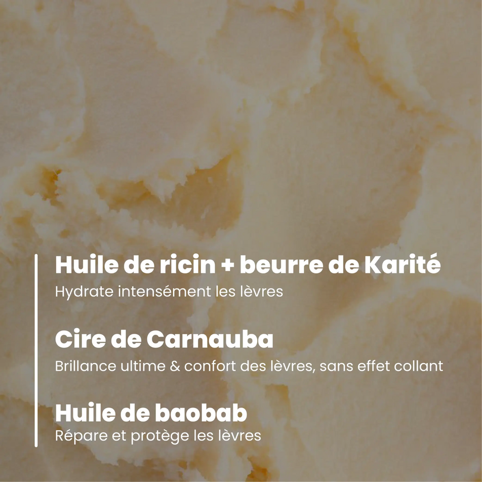 Aceite de ricino, manteca de karité y vitamina E.