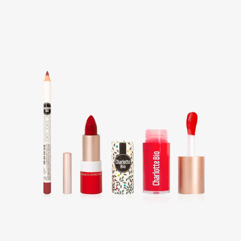 Lápiz de labios: Nude Brun : ACEITE DE SEMILLA DE SIMMONDSIA CHINENSIS (JOJOBA)*, TRIGLICÉRIDOS C10-18, CERA COPERNICIA CERIFERA (CARNAUBA)*, SÍLICE, ACEITE VEGETAL HIDROGENADO, TRIGLICÉRIDO CAPRÍLICO/CÁPRICO, POLIGLICERIL-3 DIISOSTEARATO, ORIZANOL, GLICERIL CAPRILATO, TOCOFEROL, CI 77891 (DIÓXIDO DE TITANIO), CI 77492 (ÓXIDOS DE HIERRO), CI 77491 (ÓXIDOS DE HIERRO), CI 77499 (ÓXIDOS DE HIERRO) Vendimia de rosas : ACEITE DE SEMILLA DE SIMMONDSIA CHINENSIS (JOJOBA)*, TRIGLICÉRIDOS C10-18, CERA COPERNICIA CERIFERA (CARNAUBA)*, SÍLICE, ACEITE VEGETAL HIDROGENADO, TRIGLICÉRIDO CAPRÍLICO/CÁPRICO, POLIGLICERIL-3 DIISOSTEARATO, ORIZANOL, GLICERIL CAPRILATO, TOCOFEROL, CI 77891 (DIÓXIDO DE TITANIO), CI 77491 (ÓXIDOS DE HIERRO), CI 77492 (ÓXIDOS DE HIERRO), CI 77499 (ÓXIDOS DE HIERRO) Rojo : ESTEARATO DE OCTILDODECILO, ACEITE DE COCO*, TRIGLICÉRIDOS C10-18, CERA DE CARNAUBA*, TRIBEHENINA, SÍLICE, POLIGLICERIL-3, DIISOESTEARATO, CAOLÍN, ORIZANOL, CAPRILATO DE GLICERILO, TOCOFEROL, CI 77742 (VIOLETA DE MANGANESO), CI 77891 (DIÓXIDO DE TITANIO), CI 77491 (ÓXIDOS DE HIERRO).